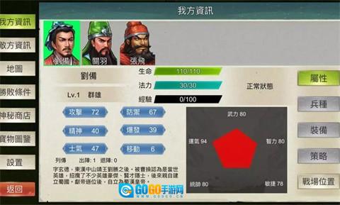 攻略:这一关开局孙坚就靠着飞毛腿技能径直冲向袁绍所在的安全区域(属实狡猾)。首先派关羽去斩杀华雄,其余角色则合力消灭郭汜与李傕。剩下的小喽啰处理起来就很轻松了。要在10回合内攻占李肃驻守的城寨。10回合之后,张济和樊稠的援军就会抵达。