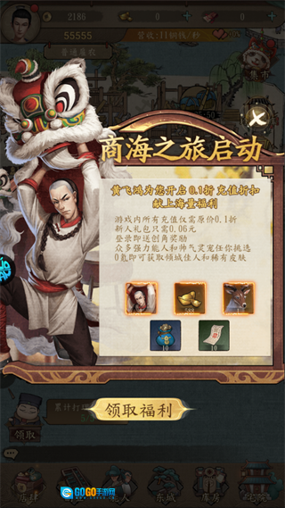 福利二:新角色创建成功后,即可获得【SSR 黄飞鸿】与【SSR 驯鹿】,助力开启您的经商征程!