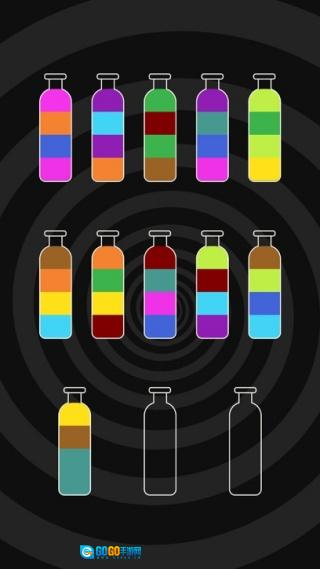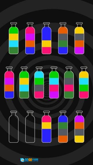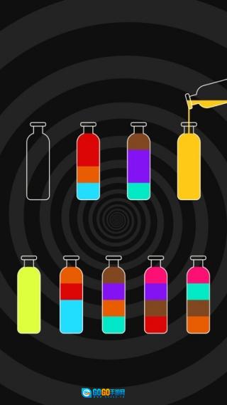 将瓶子里不同的颜色区分开,把所有颜料归类成几种纯色,通关就是如此简单。