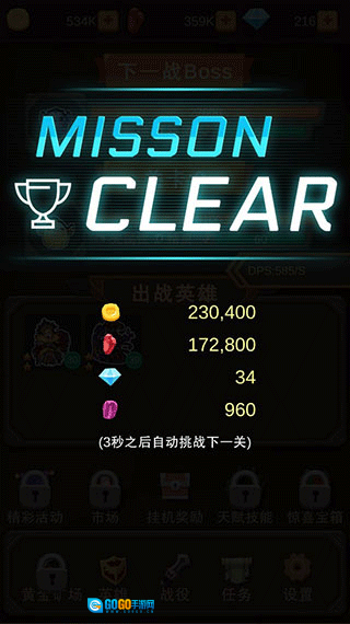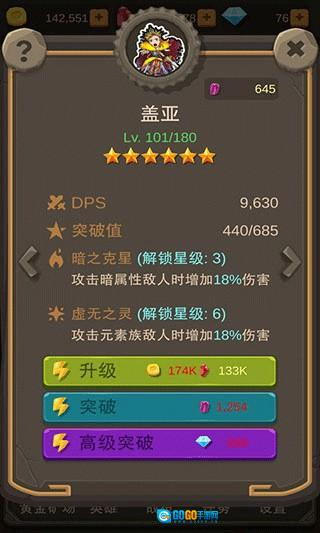 你得在一分钟内战胜最终头目,无需手动操作就能获取角色提升的所有资源,系统会自动推进关卡进度。
