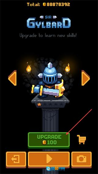 1、消耗100金币升级【SirGylbard】角色,强化其技能来提升在地牢探索时的生存能力,为接下来的挑战积蓄优势。