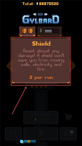 2、获取【Shield】道具,该道具可抵御大部分伤害,不过对移动墙、电和火类伤害无效,每次地牢探索仅限使用2次,需合理规划其使用时机。