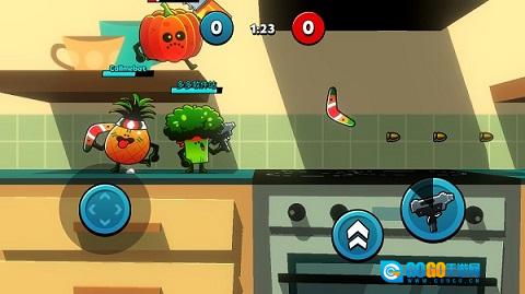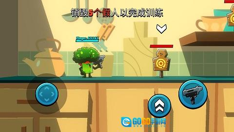 1、战斗过程中,通过【移动按钮】来控制角色的移动方向,利用【射击按钮】瞄准【南瓜】这类敌人发起攻击,同时要躲开对手武器的攻击,以保证自身的安全。