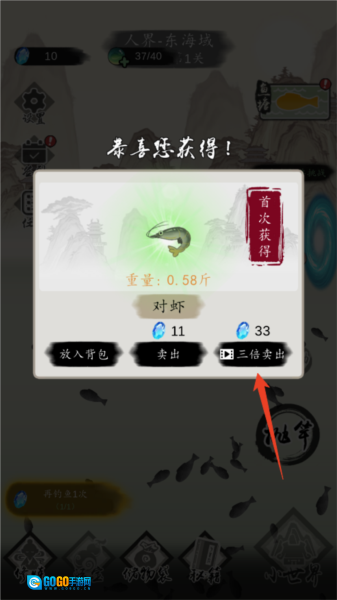 接下来点击售卖按钮即可,毕竟修炼过程中会耗费灵石,初期捕获的鱼类建议全部出售。