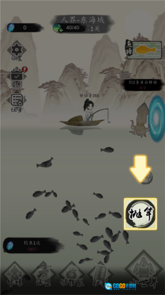 点击抛竿即可,当然,要鱼在鱼竿下方才可以。