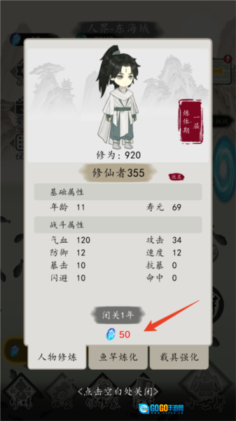 接下来玩家便能着手进行修炼,自身的修为水平会直接影响后续战斗的成功概率。