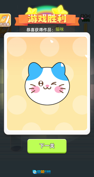 完成一幅绘画即可通过当前关卡,获胜后能解锁奖励画作,像可爱的小动物形象,接着就能开启下一轮挑战。