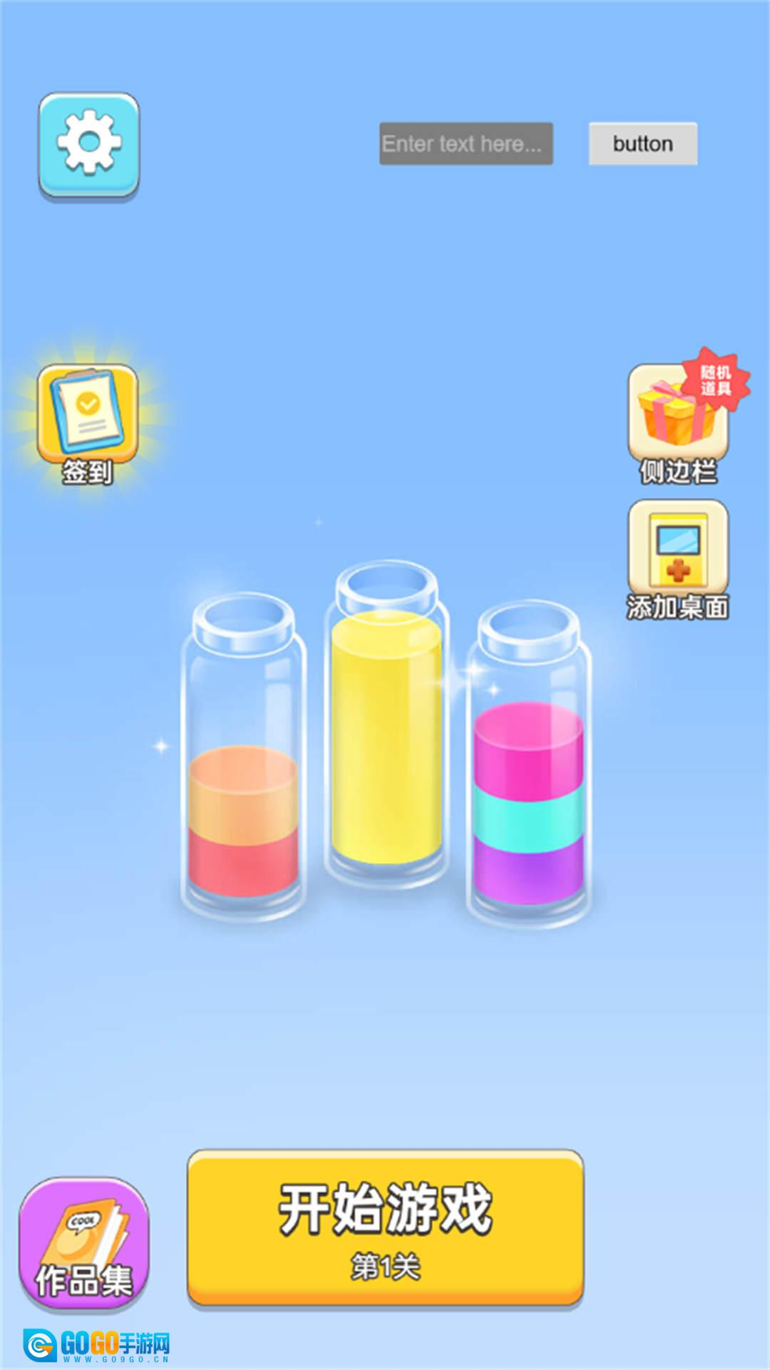 进入游戏场景后,会发现几瓶不同颜色混合的颜料液体,需要按照颜色将它们整理排列。