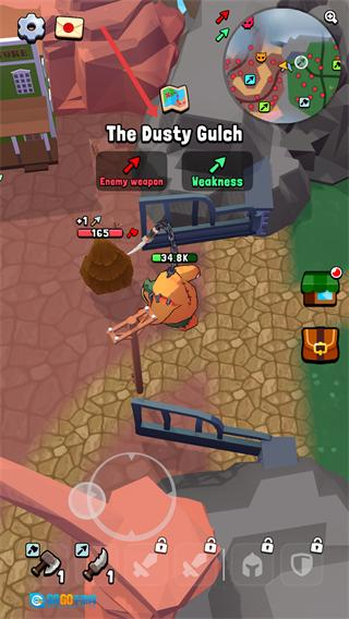 4、到达【The-Dusty-Gulch】区域,遭遇新的敌人,界面会显示该敌人的【Enemy-weapon】和【Weakness】信息,做好攻击准备。