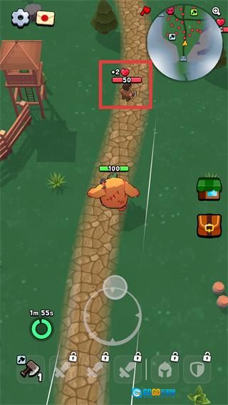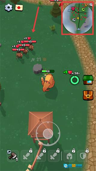 1、控制红框内的屠夫角色顺着道路移动,攻击途中的障碍物与敌人,以推进关卡进程。