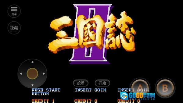 1、安装《三国志三剑圣》游戏后,依次点击投币按钮与开始按钮,就能进入游戏界面开始游玩。