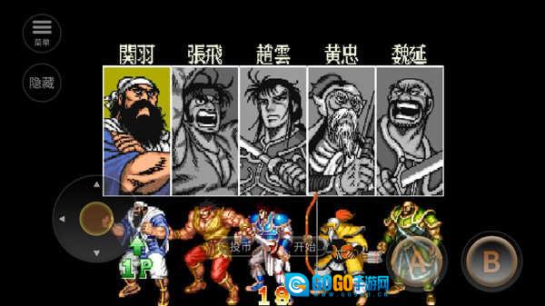 2、简单开场之后,就可以开始挑选角色了,有赵云、关羽、张飞、黄忠、魏延等五位角色可供选择。