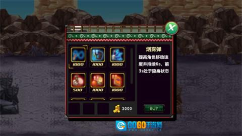 在商店里,你能找到烟雾弹、查克拉护腕、查克拉手里剑等各式各样的装备,只要花费金币就能将它们收入囊中,别忘了提升自己的实力呀!
