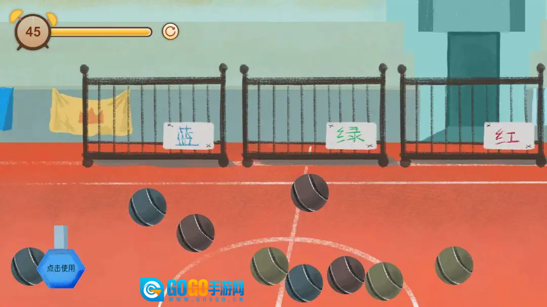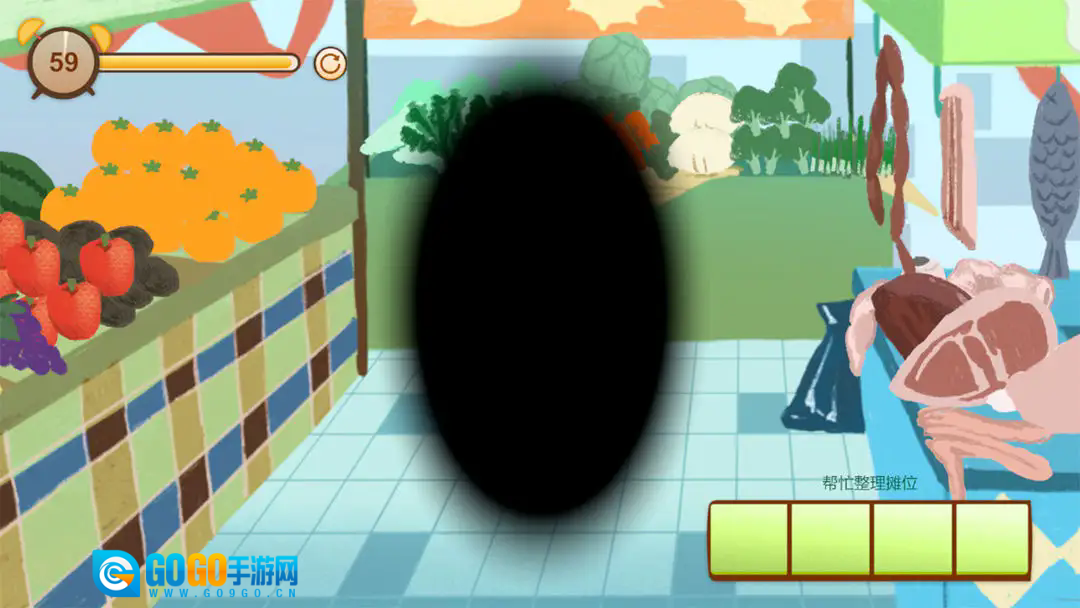 3、分析水果摊场景中黑圈覆盖的水果,结合周围色彩分布,准确区分并收集关键水果完成关卡要求。