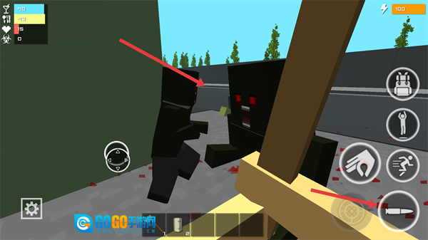 4、遇到僵尸时,使用右侧的攻击按钮,进行战斗。