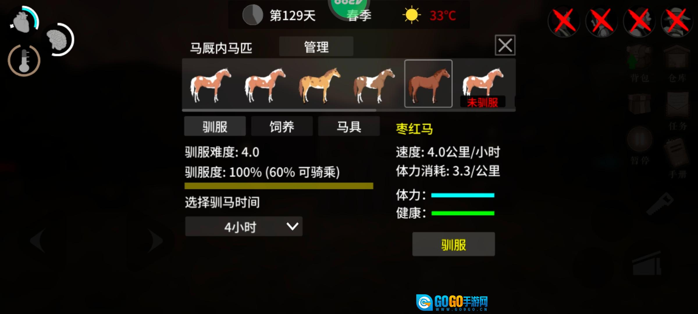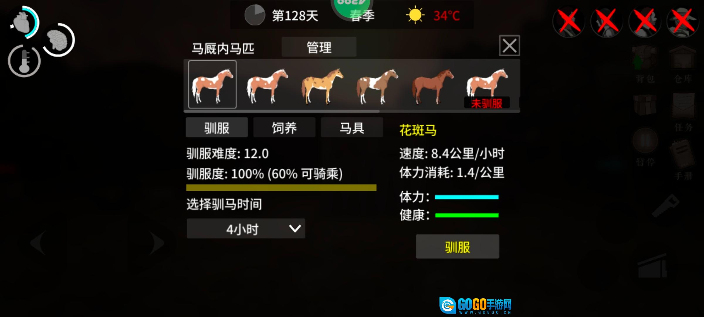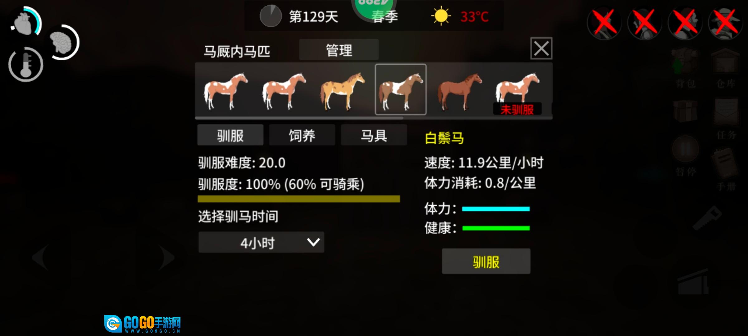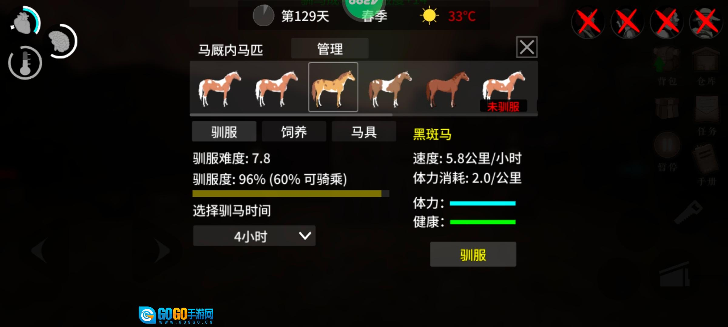 那匹长着白色鬃毛的骏马速度最为出众,起步时就能达到每小时十公里的速度,要是给它配上合适的装备,还能进一步提升奔跑的速度。