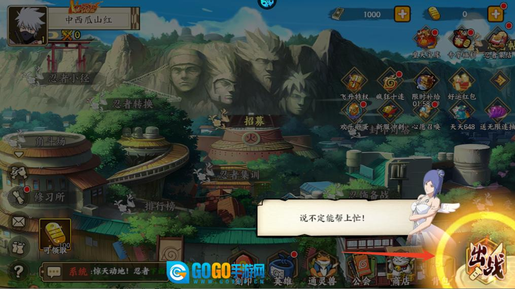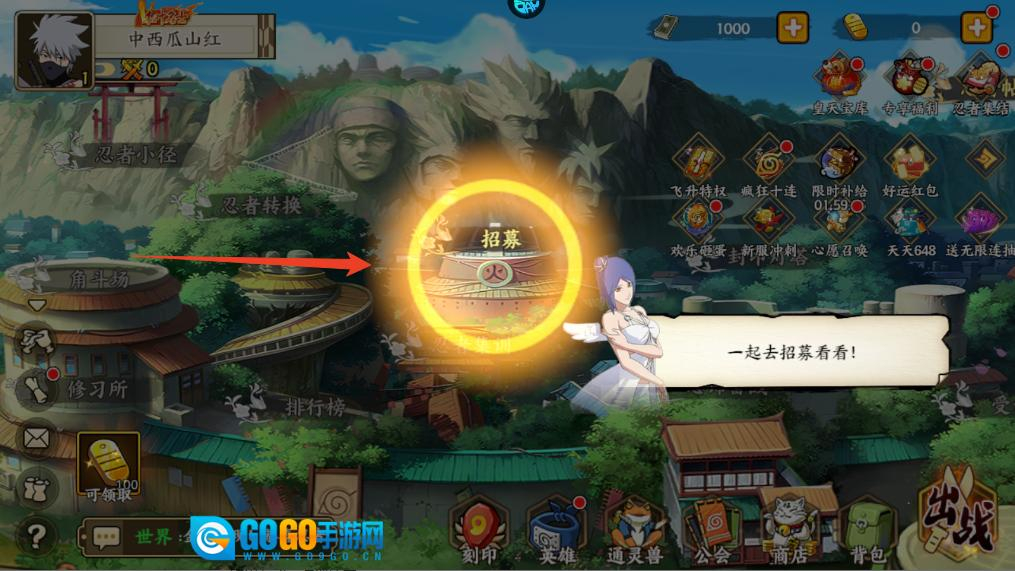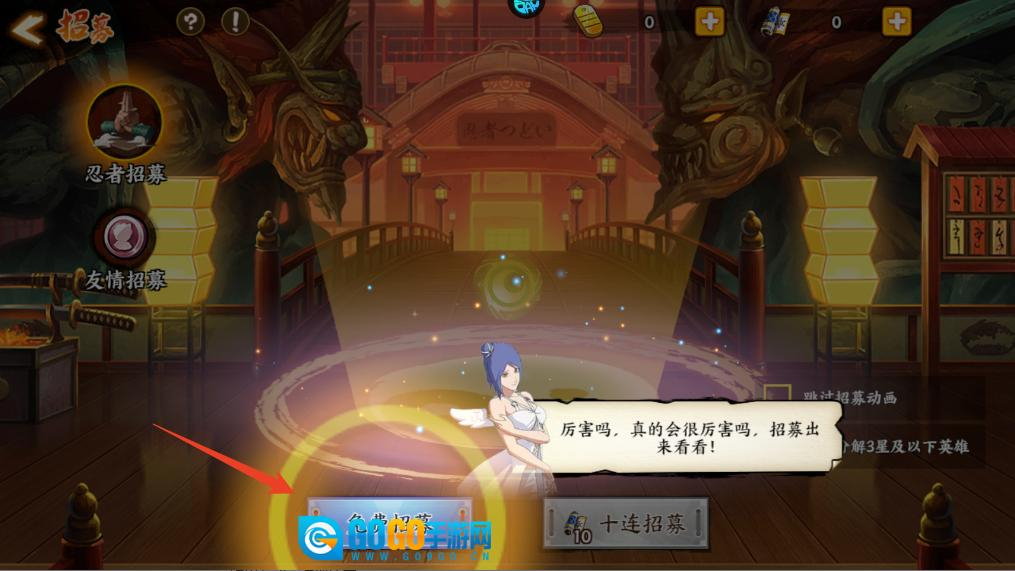卡牌游戏里最关键的环节自然是抽卡啦,你可以点击火影大楼来进行抽卡操作。