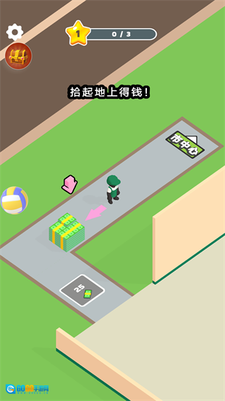 完成游戏安装后启动进入,按照指引长按屏幕控制角色移动到金币所在处,角色会自行收集这些金币。