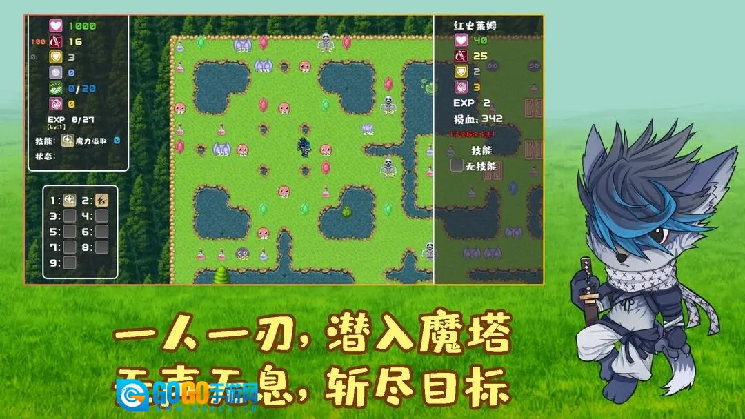 这是一位刺客的复仇清算之路。游戏机制足够简单,即便你之前从未接触过魔塔类游戏,也能迅速上手游玩。零殇仅仅希望有更多新玩家能体会到在魔塔地牢中奋战三天三夜的快乐。