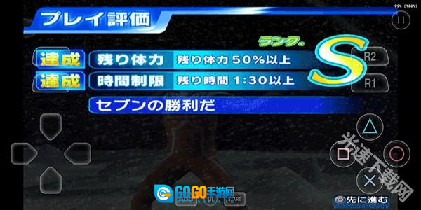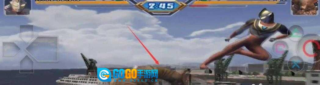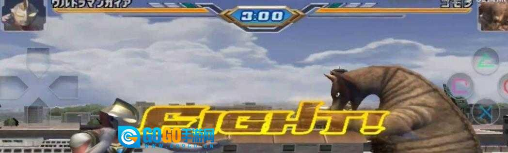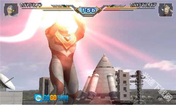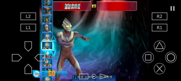 7、最关键的时刻到了:一旦触发光线对决,就把手柄的四个按键一起猛按!(HARD难度下要狂拍)要是拼赢了,就能看到迪迦摆出帅气的POSE,胜利!