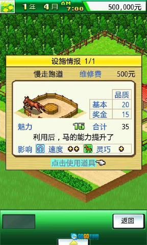 1、玩家扮演马场主人,管理独特的马场。可建设马厩、训练场、草地等多种设施,为马匹提供理想的生活环境和训练条件。
