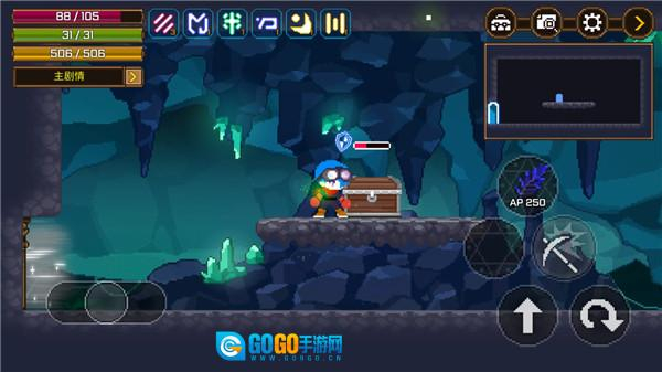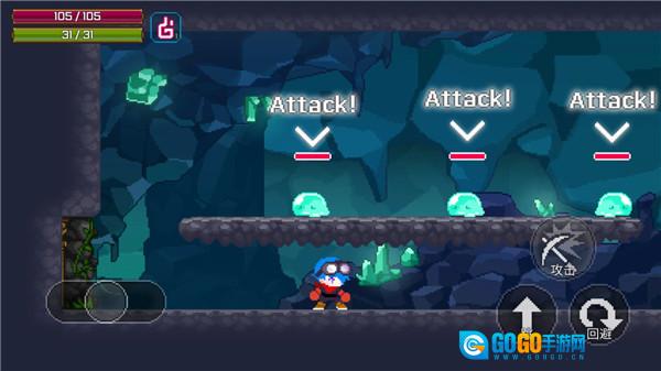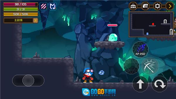 用矿镐近距离攻击怪物,借助走位和技能避开弹幕攻击,消灭敌人能恢复AP。