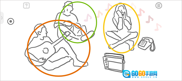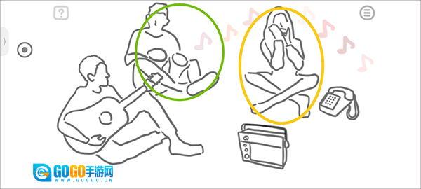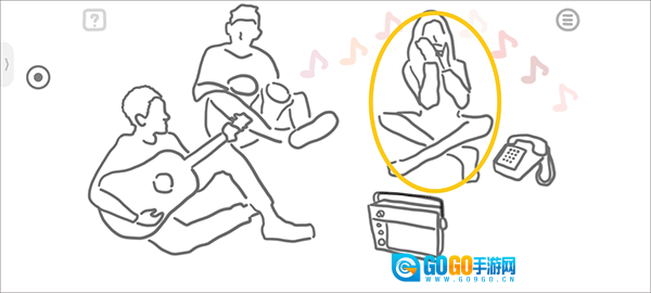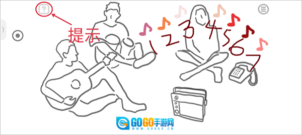 再点击音响和手机之后,第一个吹口笛的小姐姐一共出现了7中音符所以排序1234567。