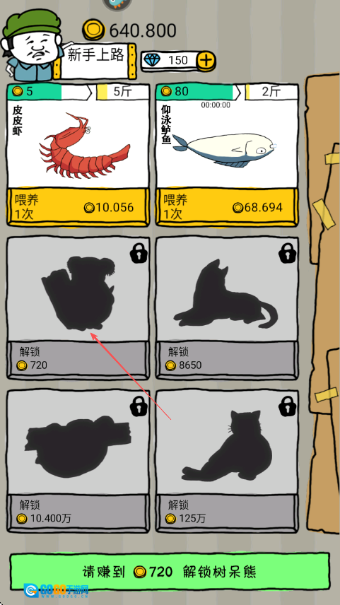 继续积累金币,等金币数量达到640800时,注意查看下方的解锁动物提示,然后努力赚取720金币来解锁树呆熊。