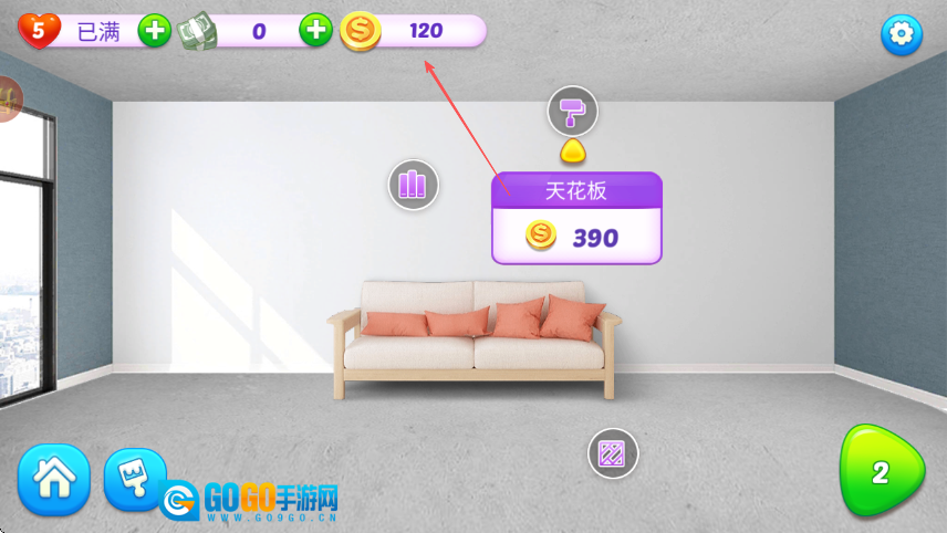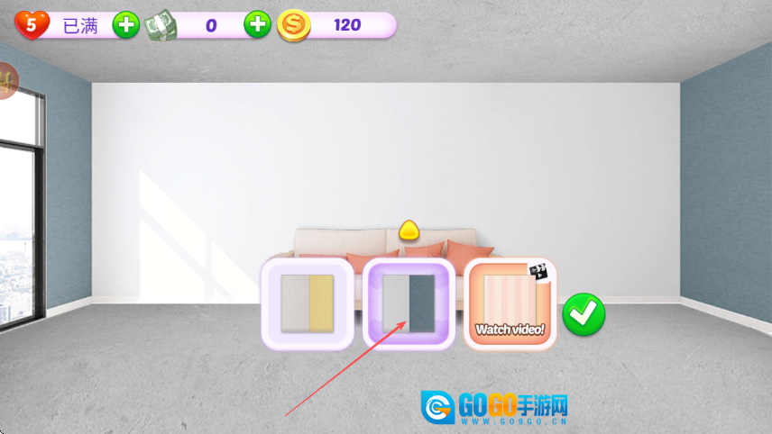 挑选墙面款式时,点击心仪的款式图标就能将其应用到房间里,既可以让房间看起来更美观,也要注意观察金币数量的变动情况。