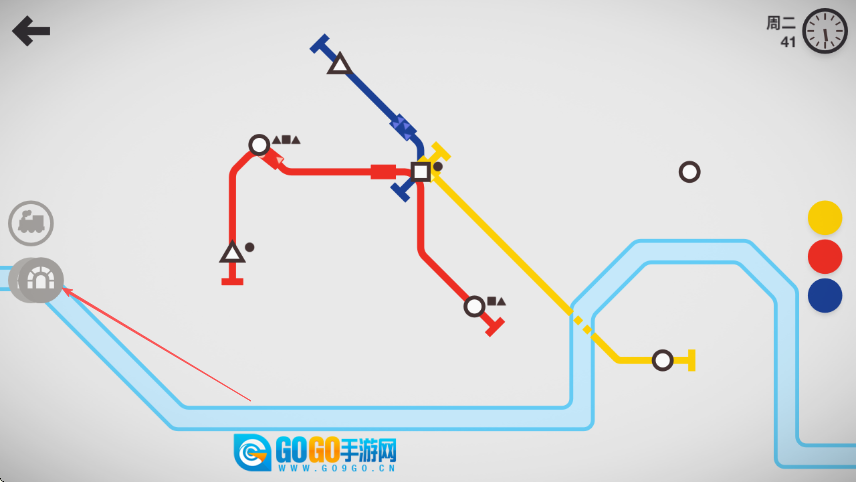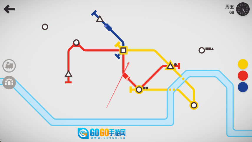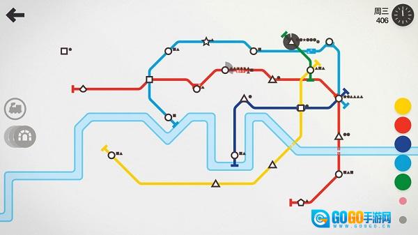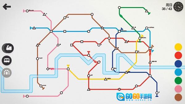 在游戏过程中,要注意不同颜色的站点有不同的需求,像黄色、红色、蓝色站点,通过调整轨道的布局来满足运输的需要。