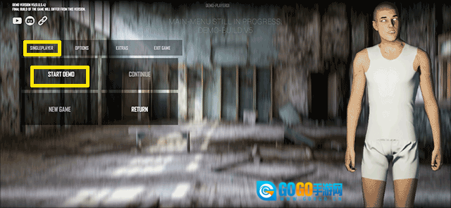 2、在主界面里,找到黄色方框内的选项并点击,就能进入游戏;
