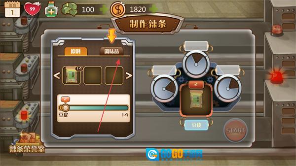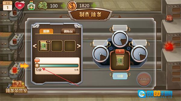 1、进入辣条制作界面后,挑选豆皮、调味品等食材,并将它们添加至对应的槽位中。