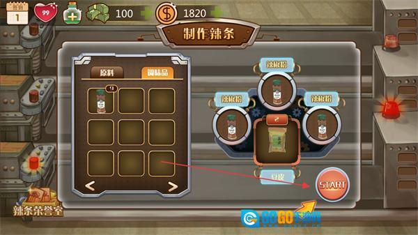 4、辣条制作完成后会被摆上货架,玩家可以通过售卖辣条获得金币,积攒这些资源就能解锁更多食材和配方。