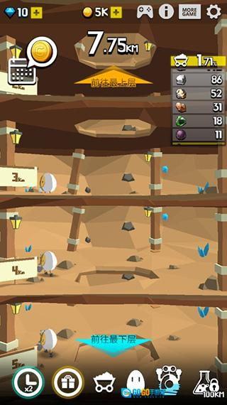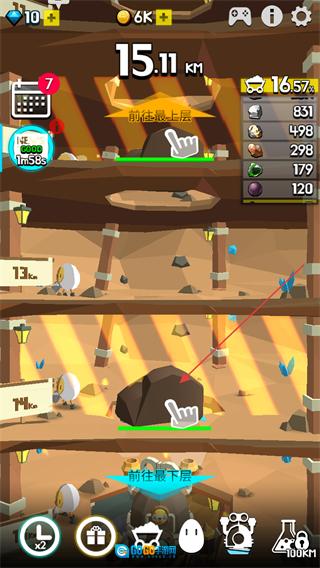 2、地下层级的设计十分丰富,从地表的土层一直延伸到地心深处,每一层都具备独特的矿石资源和地形特征,神秘的宝藏只有在深层区域才会出现,以此激发玩家持续挖掘的探索欲望。