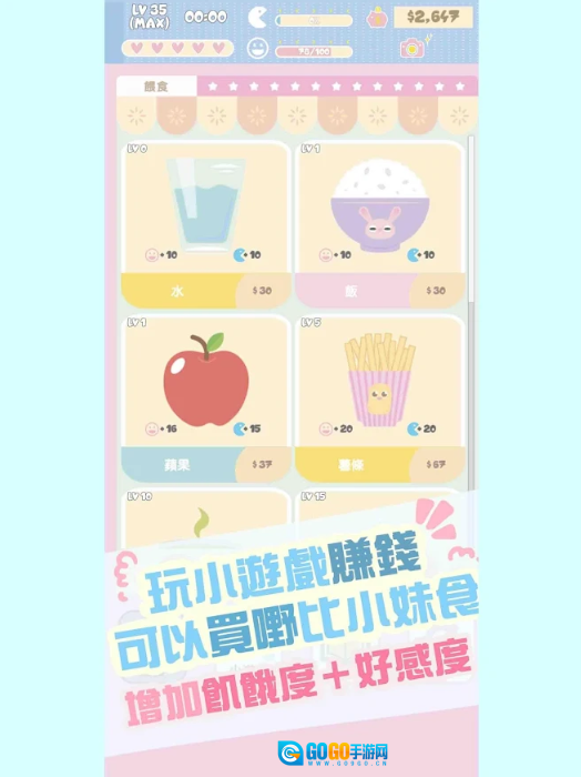 多种趣味的小游戏轻松赚钱,增加饥饿好感度;