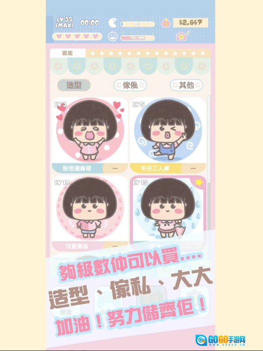 帮女主角小妹换各种可爱造型、买食物、换傢私,