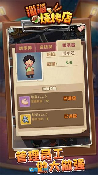 5、员工招募与培养的玩法十分丰富,每位员工都拥有独特的专属技能,例如烧烤师傅能够有效提升菜品的出品速度,服务员则可以帮助增加店铺的翻台率,通过合理的人员排班能够助力店铺实现更高效的运转。