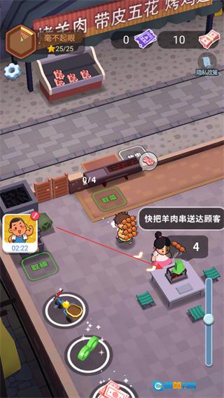 3、采用治愈系的画风,再配上充满烟火气的音效——烤肉滋滋作响的声音、顾客们的欢声笑语,结合暖色调的店铺场景,为玩家带来轻松又解压的经营体验。