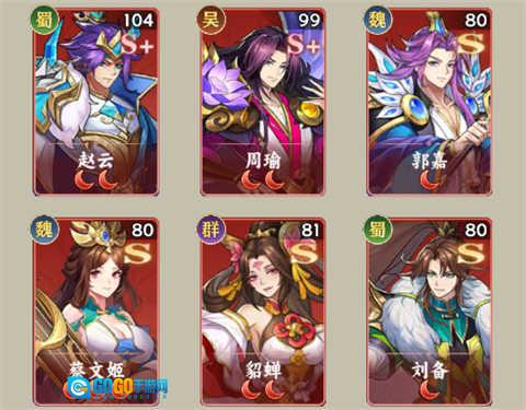 5、赵云+周瑜+郭嘉+蔡文姬+貂蝉+刘备
