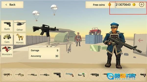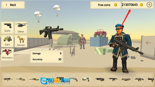 3、你可以自由地使用金币购买枪械、坐骑、直升飞机、恐龙等物品。