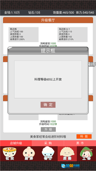 5、当餐厅依靠菜品销售达成稳定盈利状态后,可运用所赚取的金币来拓展店铺的经营空间,增添更多餐桌与烹饪设备,构建更具规模的高人气美食店。