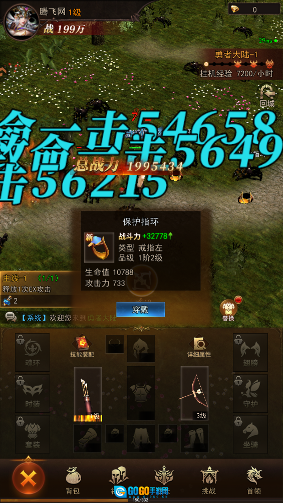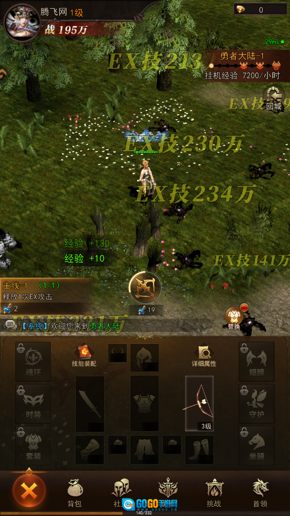 刷怪的时候,优先用EX技来大范围清理怪物,这样的效率比普通攻击高多了。不过EX技消耗的精力比较大,一旦精力不够用,系统就会弹出精力礼包。
