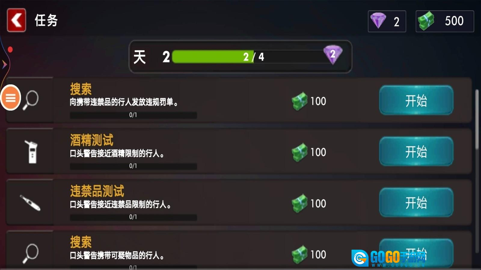 进入主界面后,点击“开始”按钮,就能扮演警察执行一系列任务了。