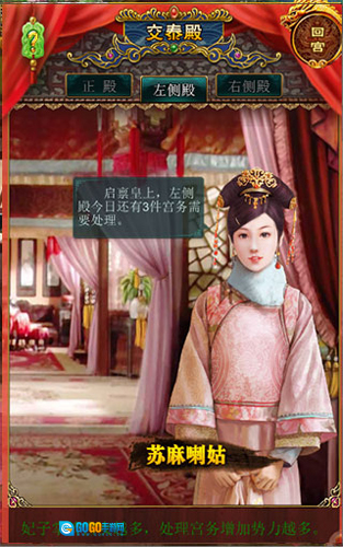 交泰殿是妃嫔处理后宫宫务之处,每日各殿可领取三次任务,初始仅正殿对外开放。每完成一项宫务,妃嫔便能获得相应的后宫势力,宫女数量越多、能力越强,妃嫔所获势力也就越多。