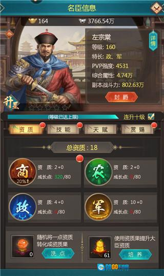 不过,流放大臣会损失之前为其升级花费的银两、论战技升星石、封爵道具以及突破资质的相关投入,但能返还资质果(涵盖赐花、食用的资质果和封爵资质对应的部分)与珍宝书,因此流放操作需要谨慎考虑。在游戏推进到不同进度节点时,都可以进行大臣招募,而大臣升级是快速提升国力最基础的途径。