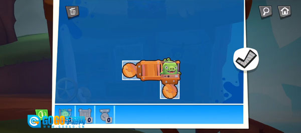 1、拖拽零件搭建:进入关卡后,从底部工具栏拖拽所需部件到工作区,构建能承载小猪并完成任务的载具,结构稳定性直接影响通关成败。
