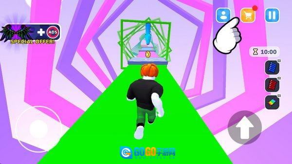 游戏玩法采用跑酷模式,玩家需通过跑酷操作一路前进,直至抵达终点。