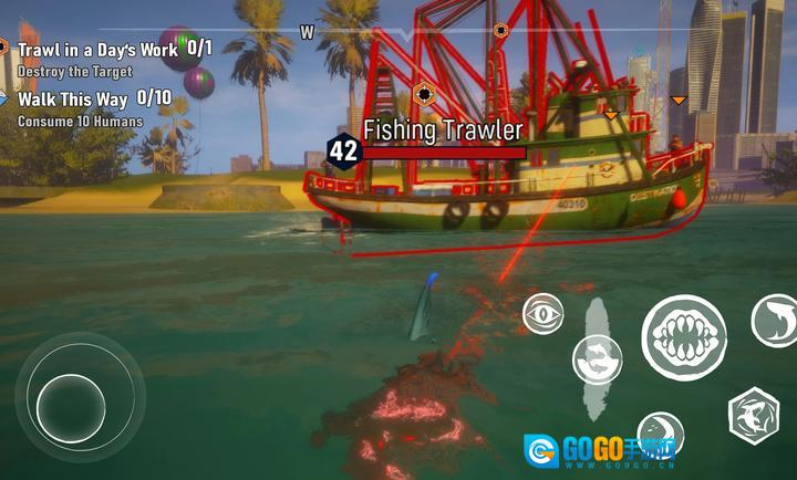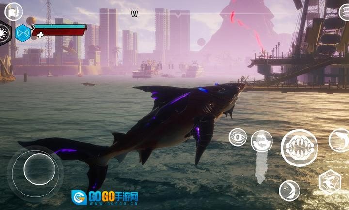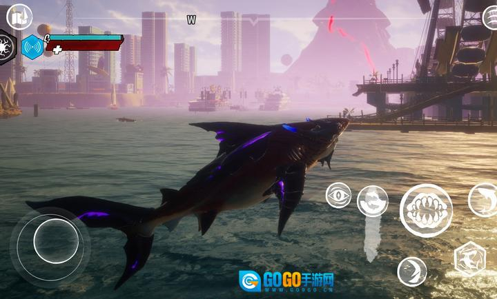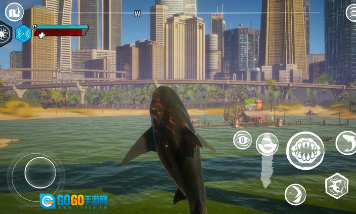 5、w键,主角扮演的鲨鱼可以向前方移动。