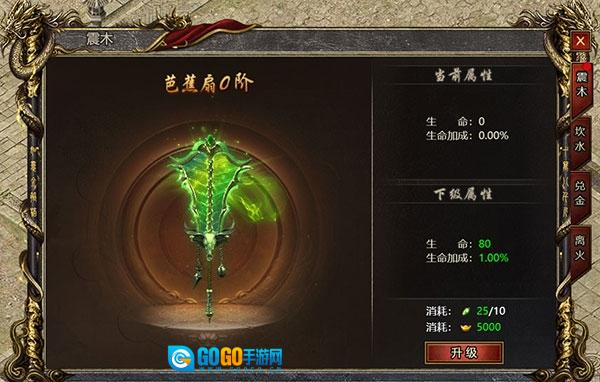 7、、首先震木对应的仙宝是芭蕉扇对应的加成属性是生命,每提升一阶仙宝,需要消耗一定的材料震木精华和绑定元宝来提升阶数;