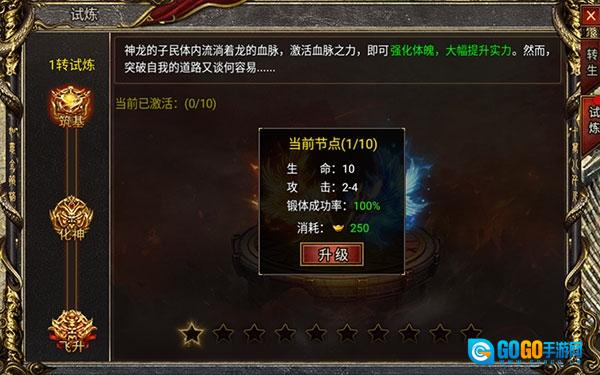 5、第三重飞升,需要消耗到一定的转生证明才能完成任务,相对于前两重,这一次需要去副本进性击杀怪物来获取转生证明;